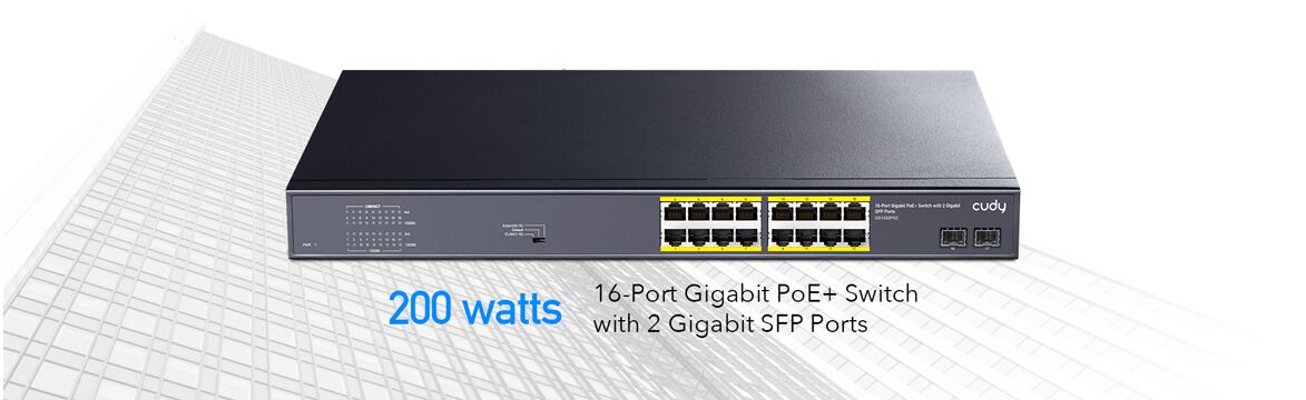 Cudy 16 Port Gigabit PoE Switch + 2 SFP 200W