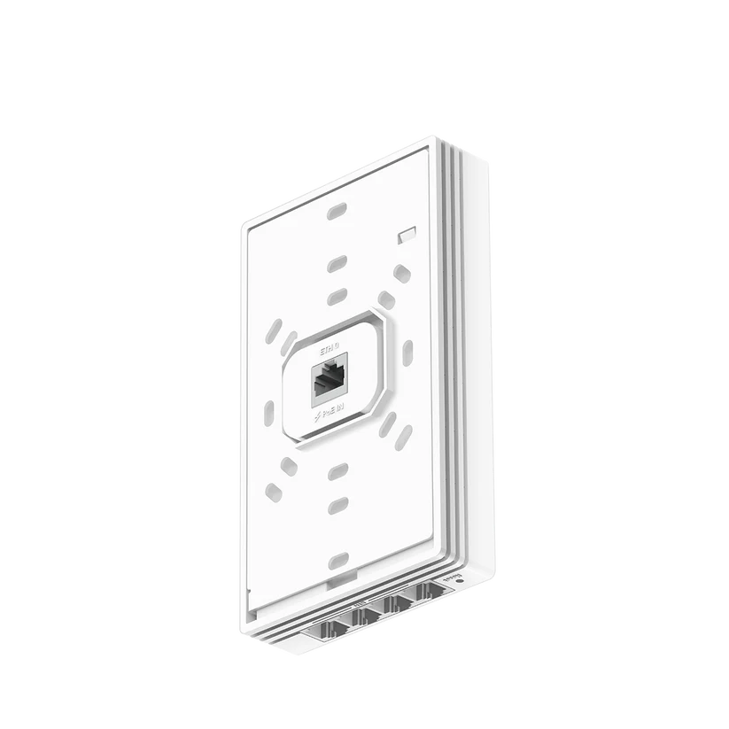 A wall-mounted WiFi AP with a built-in 5-GbE switch ideal for covering a room or ensuite in hospitality environments. One PoE output allows for connecting an IP phone or other PSE-enabled devices.