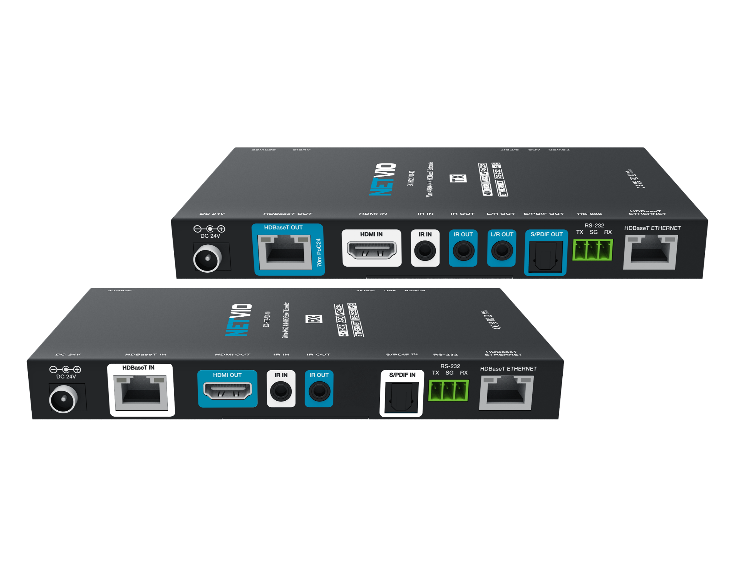 Netvio 70m 4K/60 | 100m 1080p | HDBaseT extender with ARC, 2-way IR, RS-232 & 2-way PoC