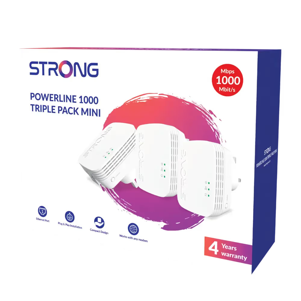 The Powerline 1000 Triple pack Mini which includes 3 Powerline 1000 mini adapters creates in an extremely simple way a high-speed home network using your home’s existing electrical wiring at speeds up to 1000 Mbit/s. No new wire required! Connect computers, consumer electronic and network-compatible devices to the Internet in any room and any floor of your home by simply using a power outlet. You just have to connect one Powerline 1000 Mini adapter to your internet modem via an Ethernet port and your Internet connection becomes immediately available from any power socket by using the second Powerline 1000 Mini adapter in the room of your choice.